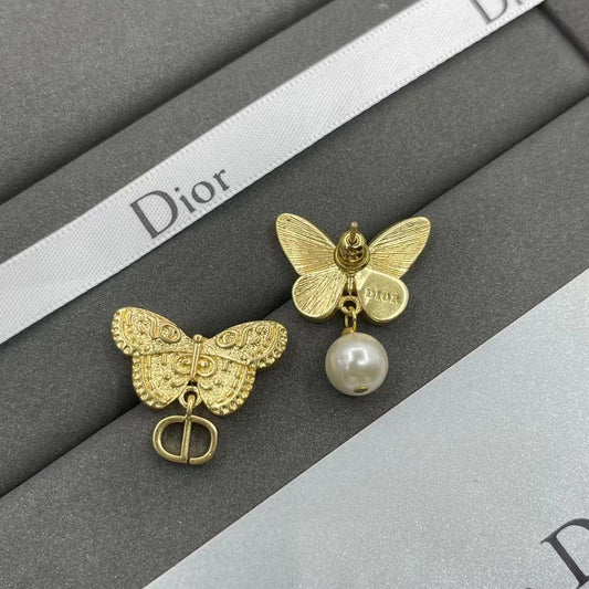 Elora Butterfly Pearl Gold Earrings