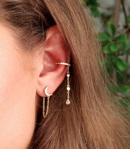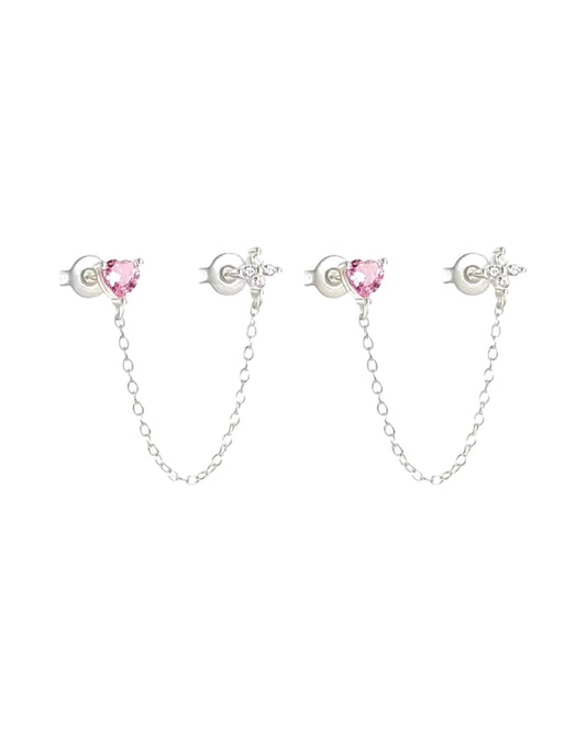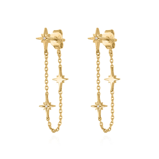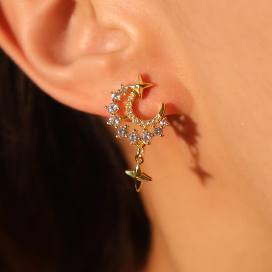 925 Sterling Silver Diamanté Moon & Star Earrings
