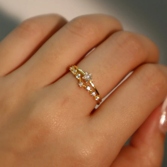 18K Gold Diamanté Vermeil Shooting Star Ring