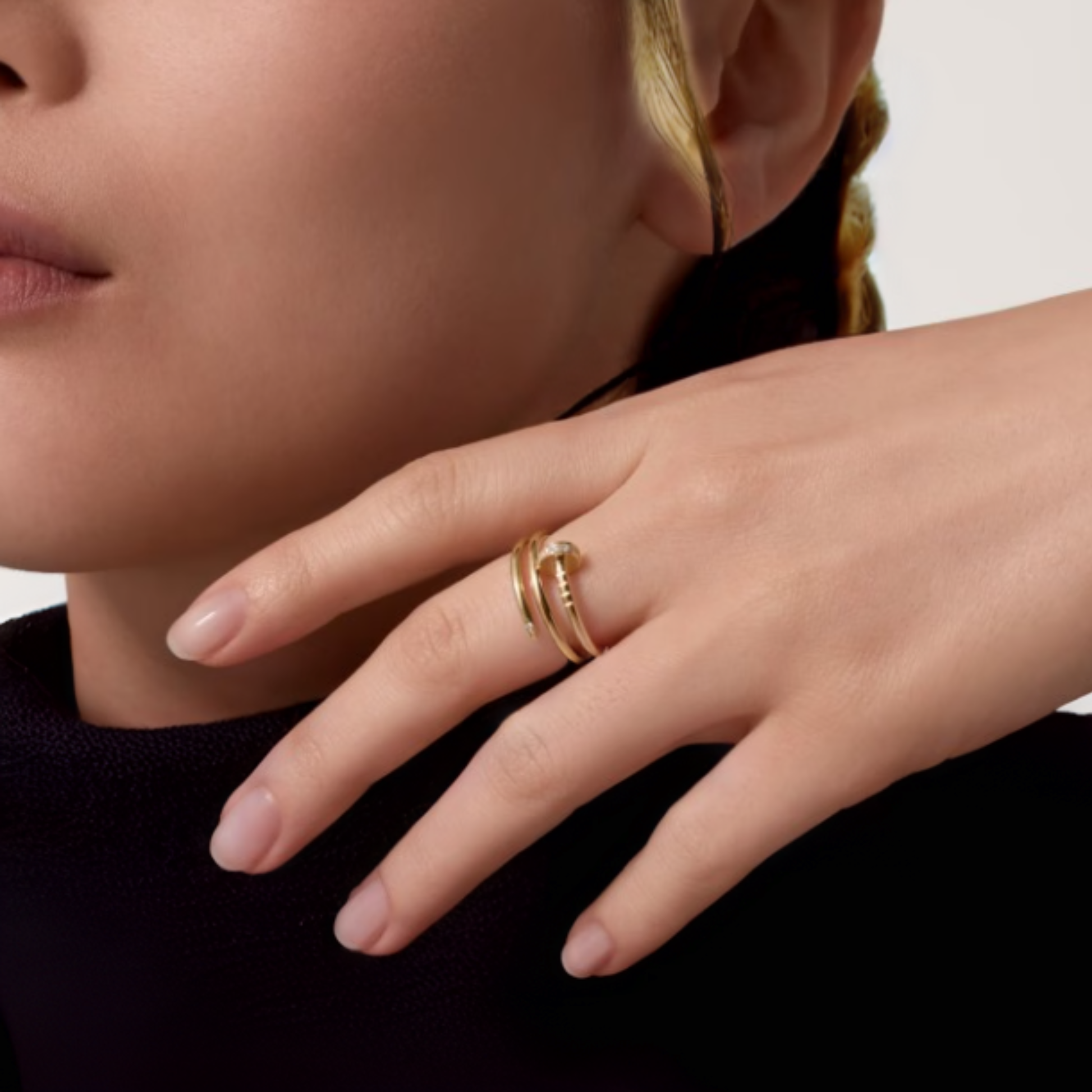 The Alana Nail Triple Diamanté Ring features a sleek nail-inspired design with diamanté detailing at the tip. Available in gold and silver finishes, Both tarnish-free and 18K gold plated, offering a modern, sparkling look perfect for stacking or wearing solo.